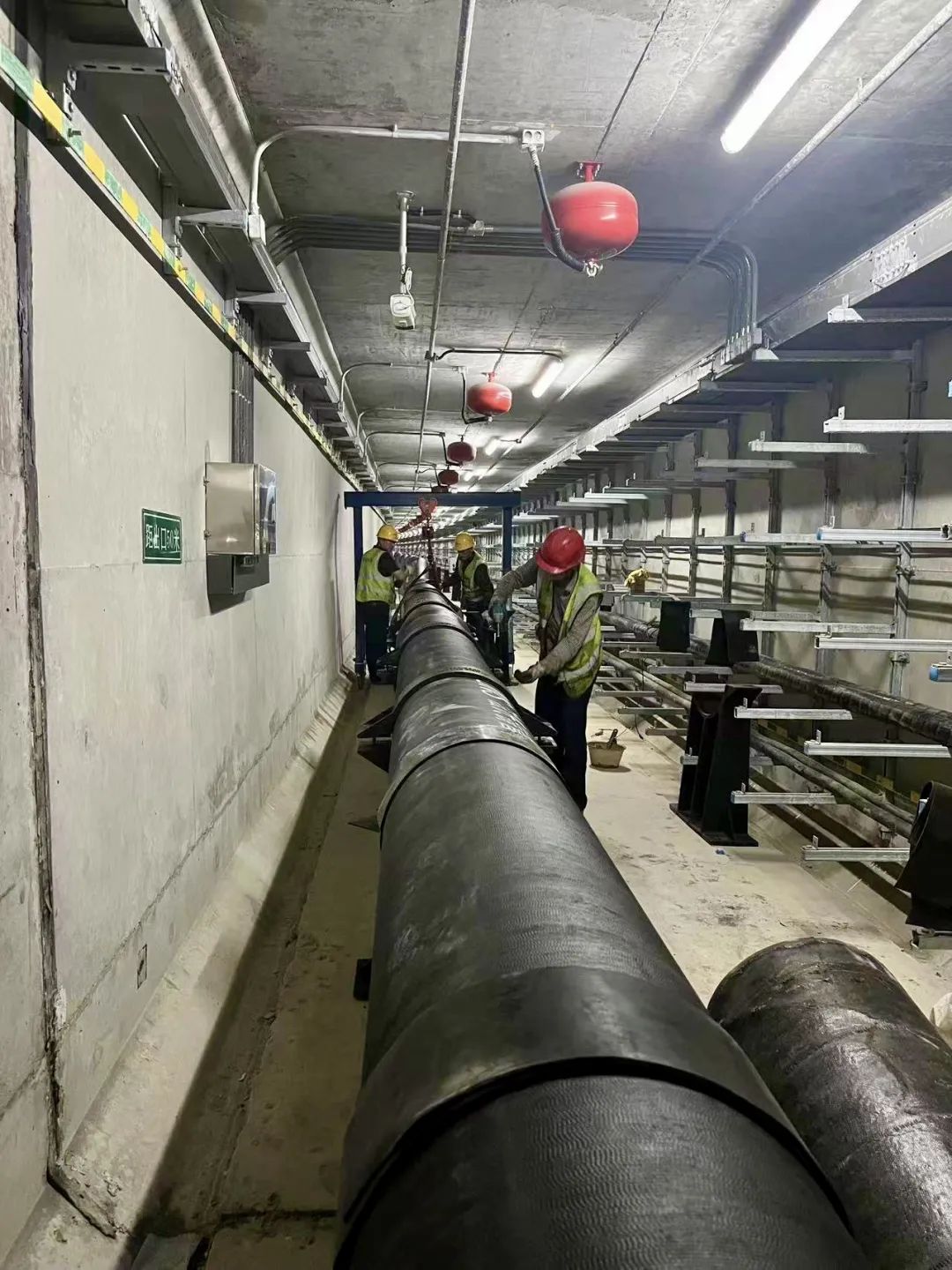 綜合管廊供水管網(wǎng)工程于今年3月份啟動,總投資700多萬元,在管廊運營管理單位和相關(guān)部門的指導(dǎo)下,施工單位結(jié)合實際制定施工方案、創(chuàng)新施工方法,專門定做適合地下管廊作業(yè)使用的小型龍門吊和水平運輸工具,同時上足人力,確保材料轉(zhuǎn)運入廊不受影響,從而克服了作業(yè)空間狹窄、材料轉(zhuǎn)運吊裝等困難,確保了項目安全、有序完成。進入管廊可以看到,一條直徑DN400的球墨鑄鐵管道被穩(wěn)穩(wěn)安裝固定在管廊底部基座上,管道兩端將分別與迎賓大道、編鐘大道供水主管網(wǎng)連通,管道通水后城南片區(qū)供水將形成環(huán)狀管網(wǎng),可有效緩解片區(qū)供水壓力不均衡的現(xiàn)狀,將為城南片區(qū)供水服務(wù)及后期開發(fā)建設(shè)提供堅實保障。