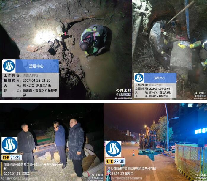 1月23日,有市民反映鐵路片區(qū)下坡處地面有積水,附近有學(xué)校,周邊住戶也較多,對(duì)市民出行造成極大安全隱患。測(cè)漏人員第一時(shí)間到場(chǎng)勘查,排查后發(fā)現(xiàn)漏點(diǎn)在下坡處拆遷區(qū)內(nèi),工作人員及時(shí)與當(dāng)?shù)厣鐓^(qū)居委會(huì)和相關(guān)部門取得聯(lián)系,經(jīng)過(guò)多方協(xié)調(diào),滿足施工條件后,立即組織搶修隊(duì)伍進(jìn)行開挖,在寒風(fēng)凜冽的深夜,搶修人員爭(zhēng)分奪秒,全然顧不上他們已凍得通紅的雙手,只希望以最快速度完成改造作業(yè),最大程度減小停水作業(yè)對(duì)居民的影響。當(dāng)晚21點(diǎn)25分歷時(shí)3小時(shí)將DN100管道漏水點(diǎn)搶修完畢,保障了極寒天氣下周邊居民、學(xué)生出行的安全。