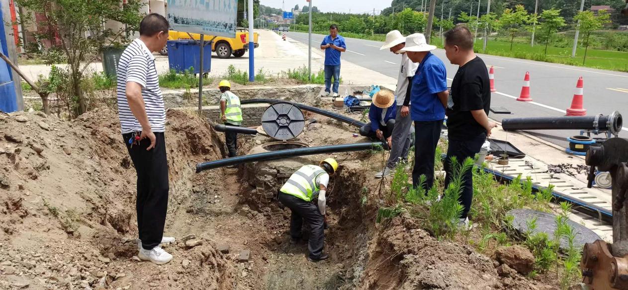 據(jù)悉,此次供水故障系主供水管道破裂所致,整個鄉(xiāng)鎮(zhèn)的供水均受影響。搶修現(xiàn)場,烈日炎炎,工作人員緊張而忙碌地奮戰(zhàn)著。他們憑借豐富的經(jīng)驗和專業(yè)的技能,很快確定了管道破裂的準確位置,并組織人員進行開挖,經(jīng)檢查,發(fā)現(xiàn)漏水點為主管銹蝕所致。由于該處供水管網(wǎng)錯綜復雜,加大了搶修的難度。然而,困難并沒有阻擋搶修人員的腳步。為盡快恢復供水,搶修人員全然不顧休息,爭分奪秒地投入搶修作業(yè)。操作挖掘設備的人員全神貫注,負責切割和焊接管道的人員更是一絲不茍,每個人都汗如雨下,但手中的工作一刻未停。